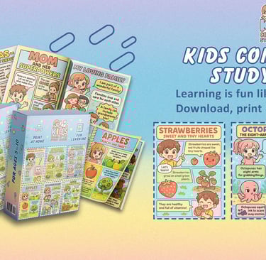 Kids Comic Style Study Books is a set of educational books for children, designed in a fun and colorful comic style to make learning engaging and easy to understand. Each page combines eye-catching illustrations, simple content, and interactive activities, making it perfect for preschool and primary school kids, whether at home or in the classroom